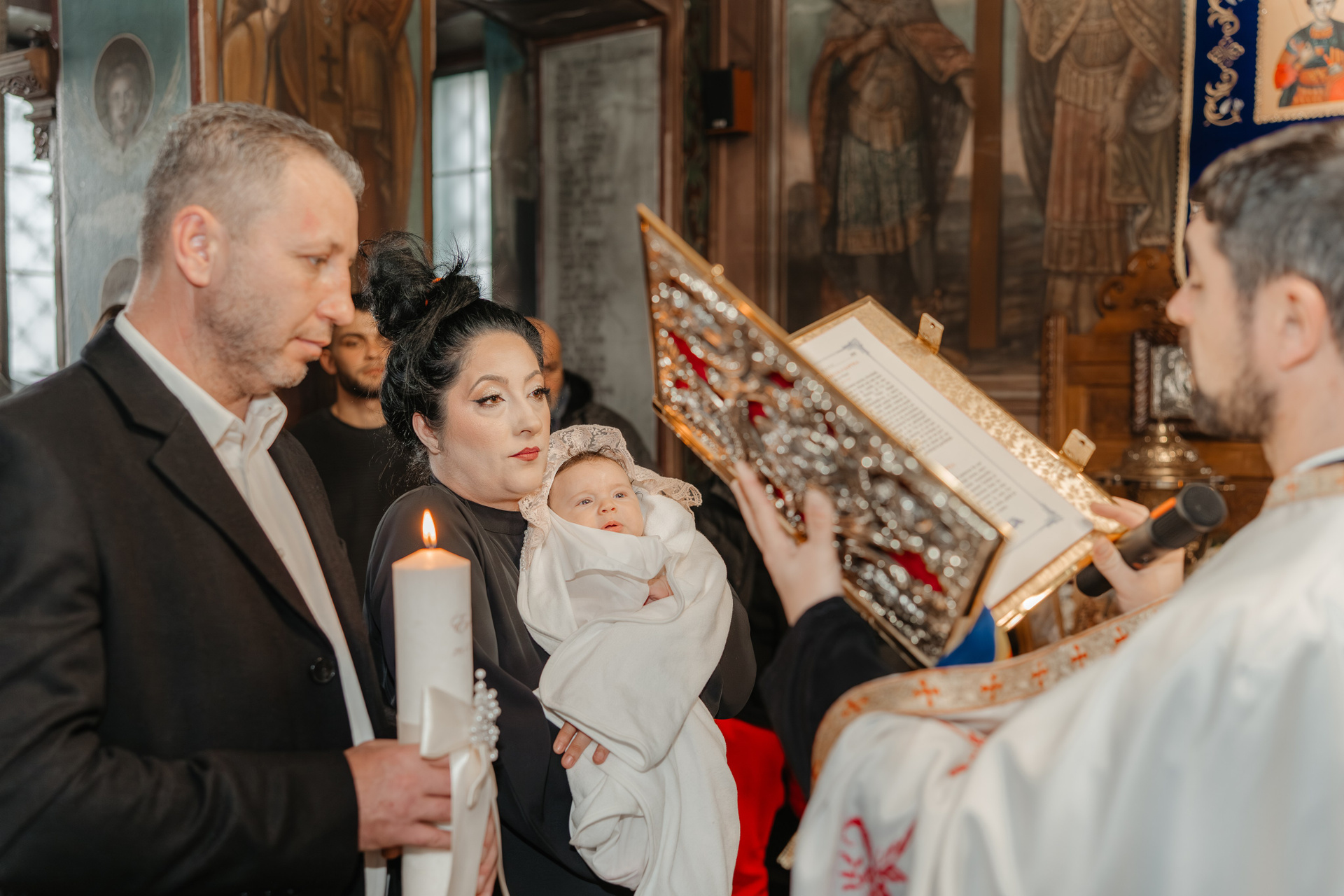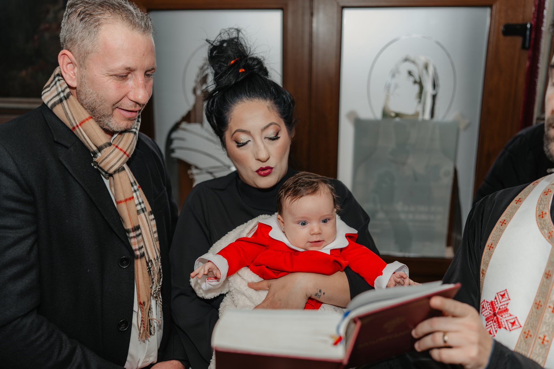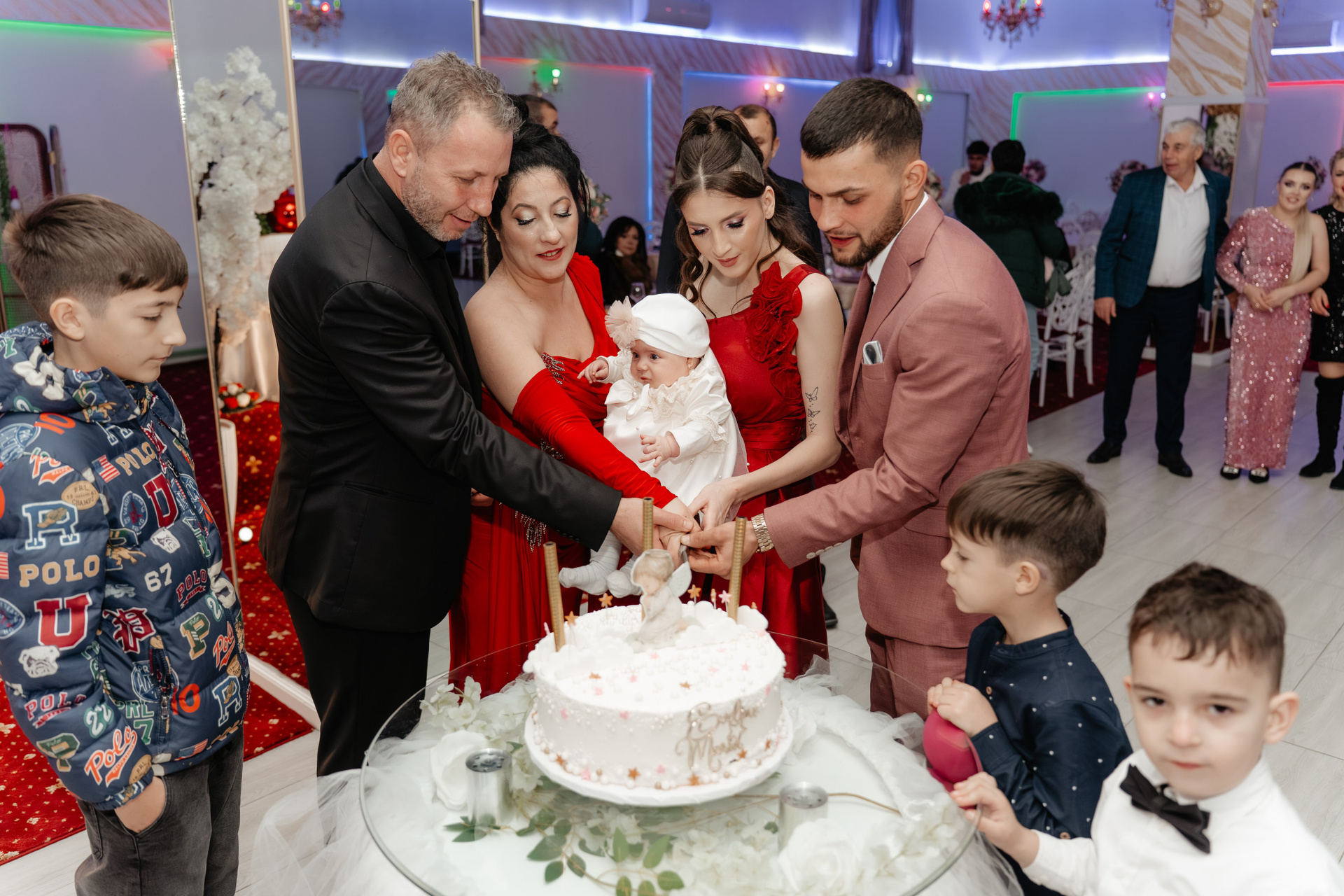 Botez plin de lumină. Emoția familiei și farmecul primei sărbători.
