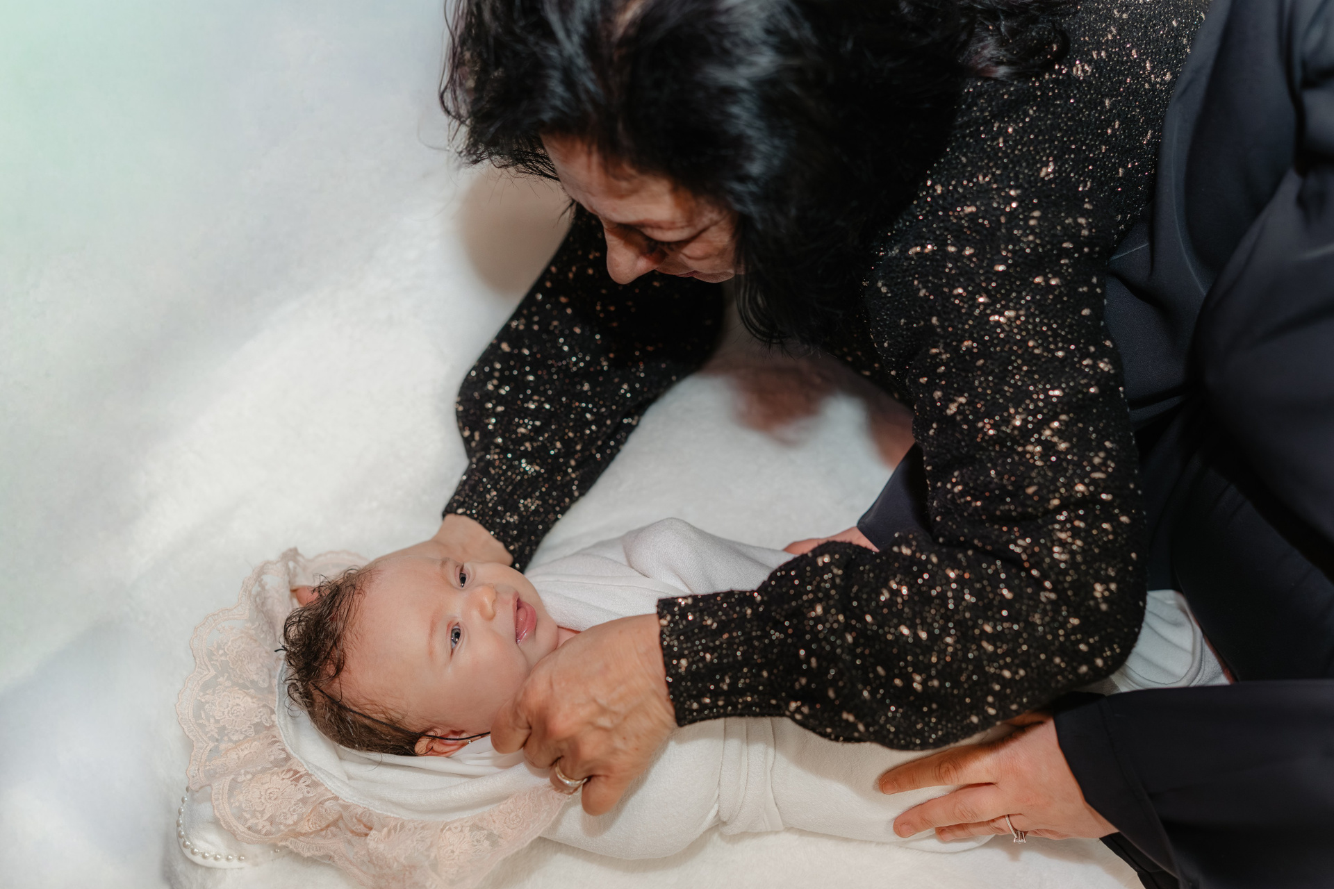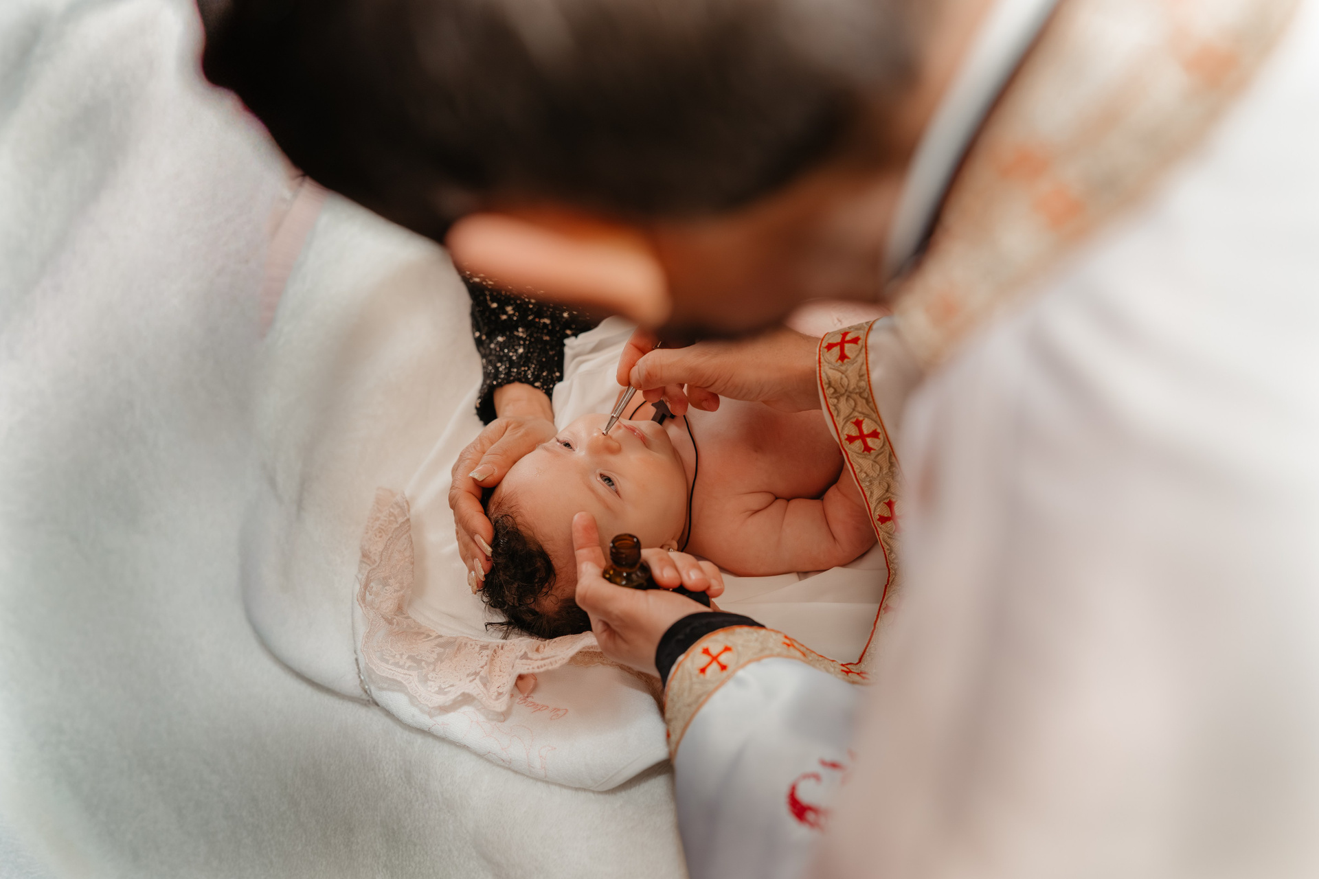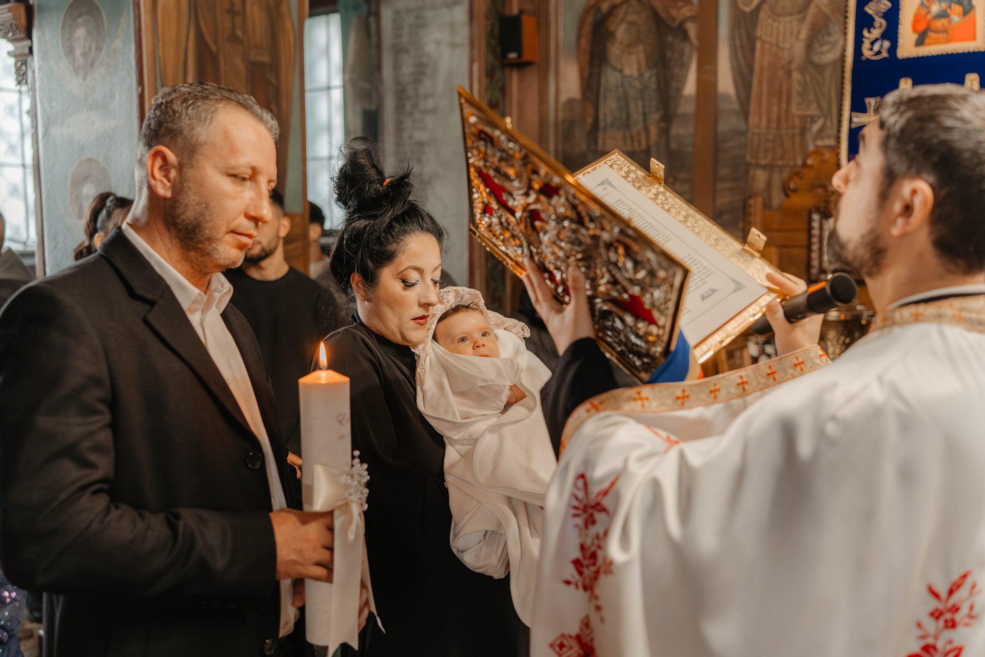Botez plin de lumină. Emoția familiei și farmecul primei sărbători.